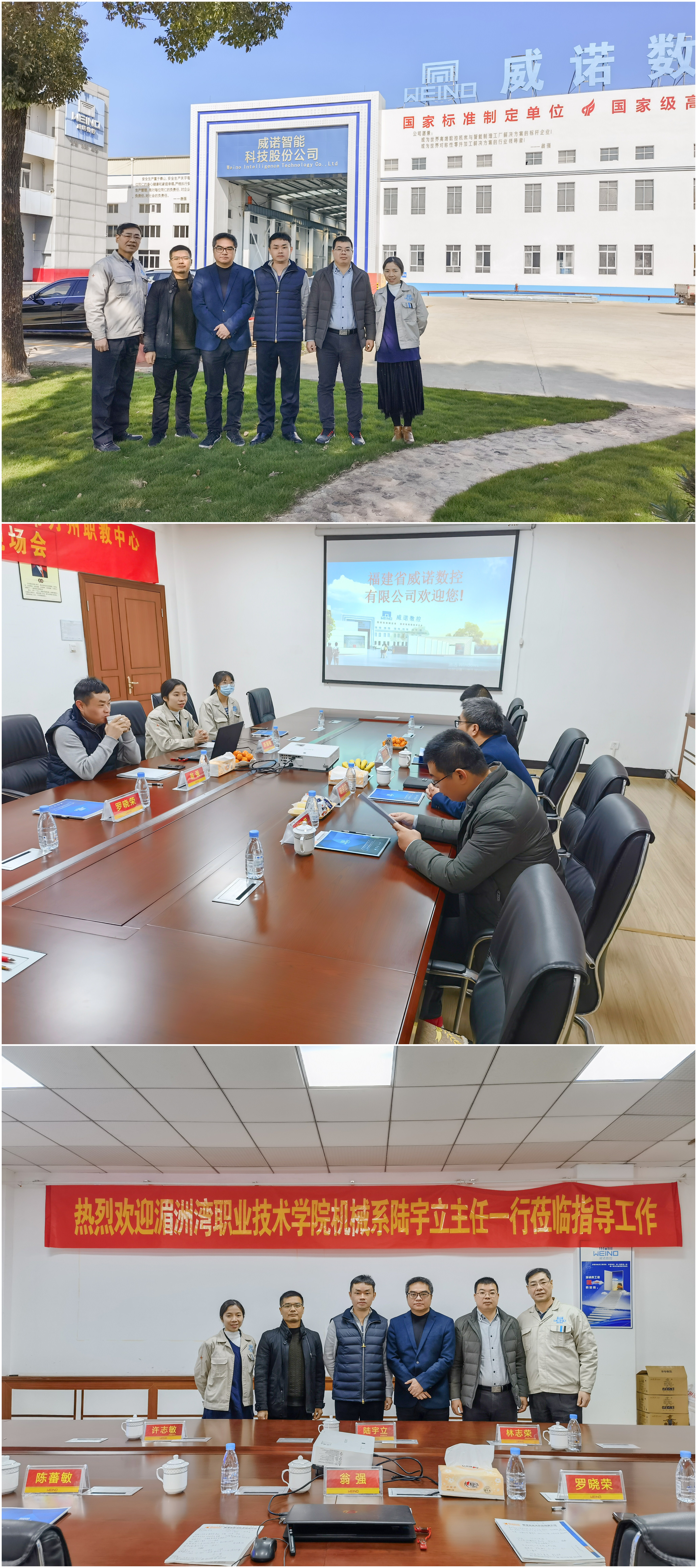 2021年元月9日上午,湄洲灣職業(yè)技術學院機械系陸宇立主任、機械系書記許志敏、機械系校企辦主任林志榮一行蒞臨威諾數(shù)控公司參觀指導工作。威諾公司董事長翁強、總經(jīng)理助理陳蕃敏,轉(zhuǎn)升辦主任羅曉榮等崗位負責人陪同參觀指導。