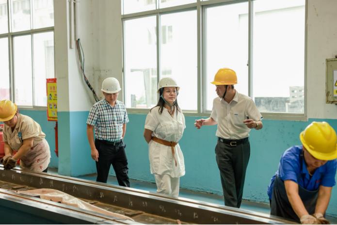 在翁強(qiáng)董事長陪同下,張利華秘書長一行走訪參觀了公司新廠、影音室、2#車間、4#智能車間“黑燈工廠”、5#車間以及公司早會(huì)室。她對公司別具特色的企業(yè)文化,現(xiàn)代一流的企業(yè)設(shè)備條件,底蘊(yùn)深厚的企業(yè)精神,育人氛圍濃郁的企業(yè)環(huán)境等再次給予高度評價(jià)。