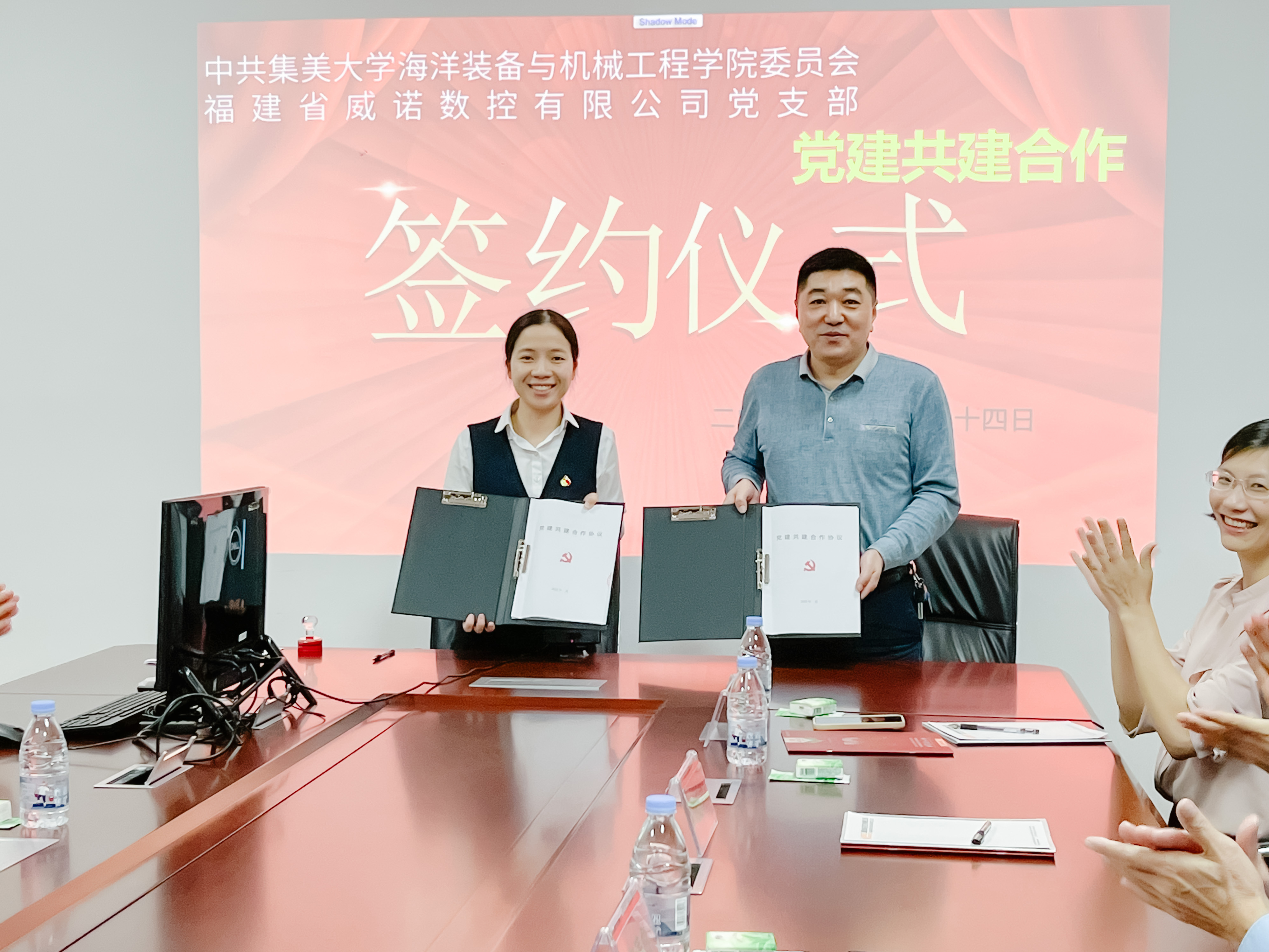 11月24日,全國樣板黨支部集美大學海洋裝備工程與機械學院黨委與福建省威諾數(shù)控有限公司黨支部“黨建引領、校企共建”活動在威諾數(shù)控有限公司舉行。集美大學校長李清彪、涵江區(qū)委組織部部長蔡志、海洋裝備工程與機械學院黨委書記陸寶忠、院長許志龍教授、威諾公司總經理翁強、支部書記陳蕃敏、第一支部書記王志耿以及公司全體黨員、入黨積極分子出席簽約儀式。