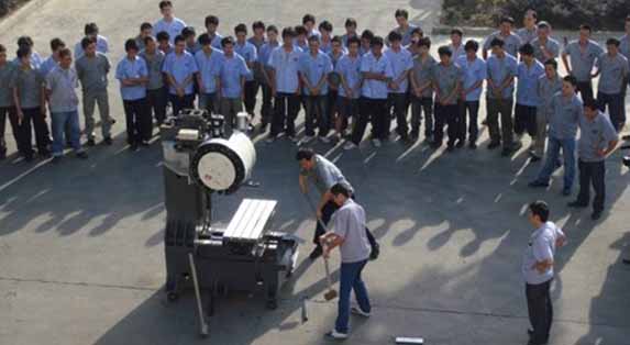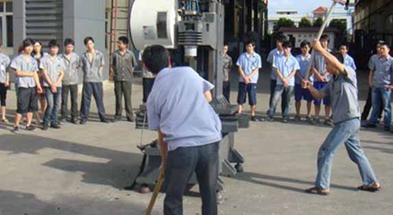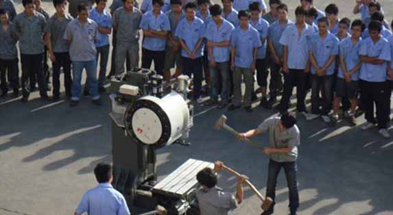 機床回到公司后,在全廠質量大會上,總經理翁強當著全體員工,拿起鐵錘對著機床沉重地砸下了第一錘。緊接著,各部門管理干部、品管人員、生產員工相繼舉起鐵錘砸下……一臺10多萬的數控機床就這樣被一錘一錘砸壞!
