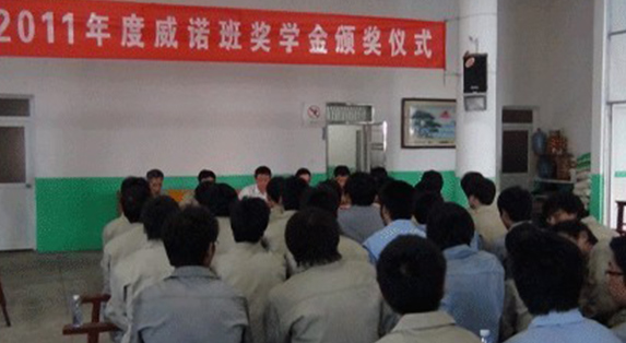 管理部康志勇部長主持儀式并介紹了校企合作和威諾班成立至今的情況;這次共有8名優(yōu)秀學(xué)生獲得“威諾獎學(xué)金”,到場的校領(lǐng)導(dǎo)和翁強(qiáng)總經(jīng)理為8位獲獎學(xué)生頒獎并合影留念。榮獲一等獎的機(jī)械系09級余樂烽同學(xué)代表獲獎同學(xué)向威諾公司表示感謝,并表示會繼續(xù)努力,爭取更大進(jìn)步。另外,還為兩位家境有困難的學(xué)生特設(shè)了“特困生補(bǔ)助費(fèi)”。