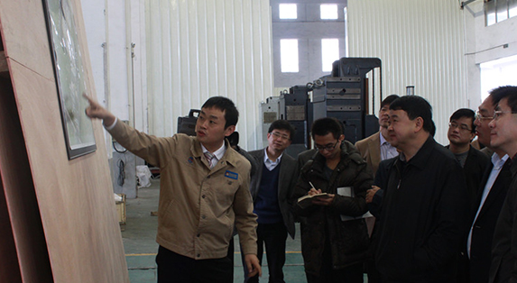 梁建勇市長(zhǎng)(右一)、陳志強(qiáng)副市長(zhǎng)(右二)認(rèn)真聽(tīng)取福建省首臺(tái)套自主研發(fā)的五軸聯(lián)動(dòng)加工中心的匯報(bào)